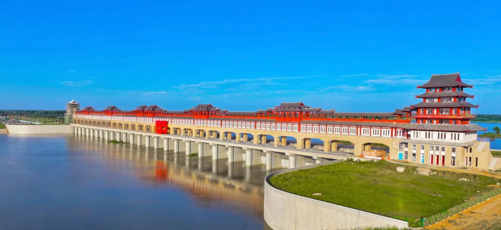 工程主要由節(jié)制閘、魚道、連接堤等建筑物組成,節(jié)制閘共計26孔,單孔寬15米,閘上正常蓄水位39.2米,蓄水庫容1.2億立方米。這一規(guī)模宏大的工程,自2020年4月開工建設(shè),2024年1月通過下閘蓄水驗收。